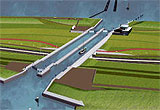 The Krabbersgat-locks at Enkhuizen are the Netherlands' busiest recreation locks. This unique structure is called a Naviduct and is the world's first and only combination of an aqueduct and a ship lock. Because the bridge, located in the Enkhuizen-Lelystad dike, has to be opened for almost every ship, long waiting times are a regular occurrence during the high season. The construction of the Naviduct solved the traffic jams on the road and on the water.
